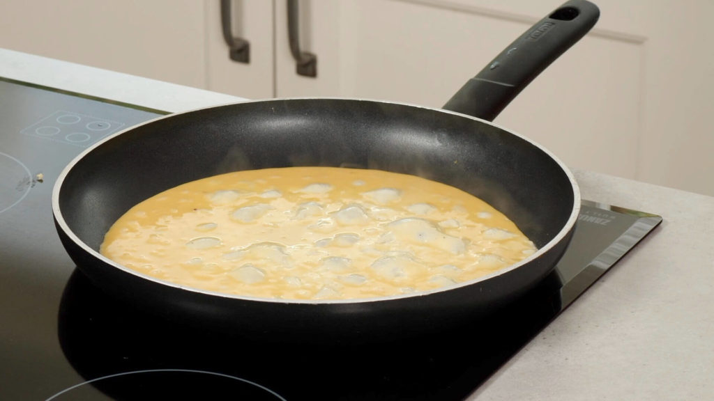 1. Lightly beat the eggs in a large measuring jug. Spray a non-stick frying pan with low-calorie cooking spray and place it over a medium heat. Pour the eggs into the pan and tilt it around to cover the base. Cook for 1½ minutes on each side or until the edges turn golden, then loosen with a palette knife and slide it onto greaseproof paper.