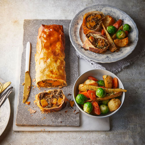 This cracking plant-based pie is filled with tender squash, porcini mushrooms and puy lentils and encased in crunchy filo pastry. Itʼs perfect for pushing the boat out on a special Sunday.