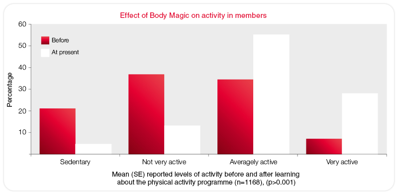 The programme was developed in collaboration with Ken Fox, Emeritus Professor of Exercise and Health Sciences, University of Bristol. It uses well-established psychological and scientific principles of behaviour change to help members find their own personal, enjoyable and sustainable way to incorporate activity into their lifestyle so that it becomes a regular part of their daily routine.